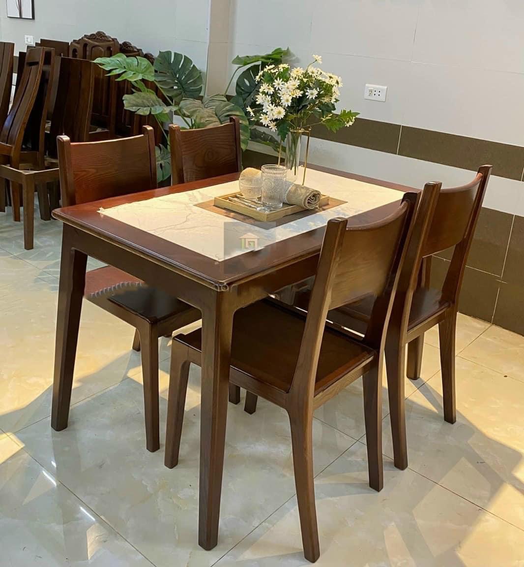 Bàn ăn gỗ sồi màu óc chó mặt đá hiện đại - Bộ 4 ghế
