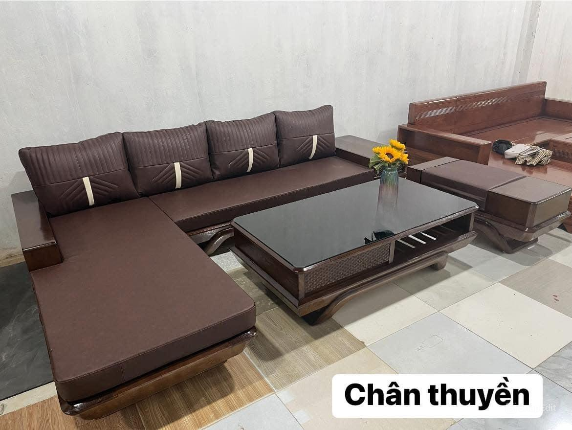 Sofa góc chữ L chân thuyền gỗ hương
