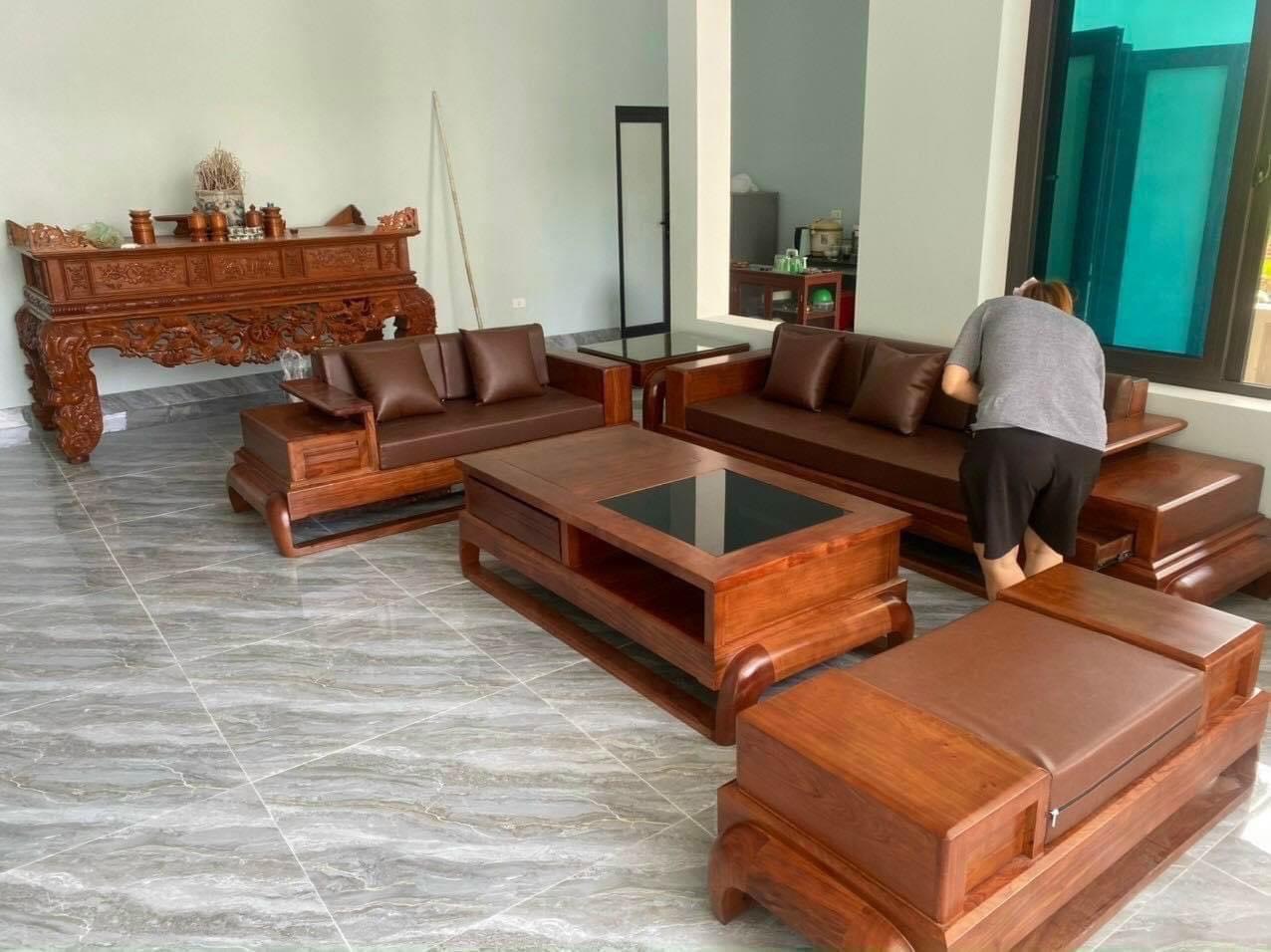 Sofa đối mẫu hộp giả nguyên khối gỗ hương