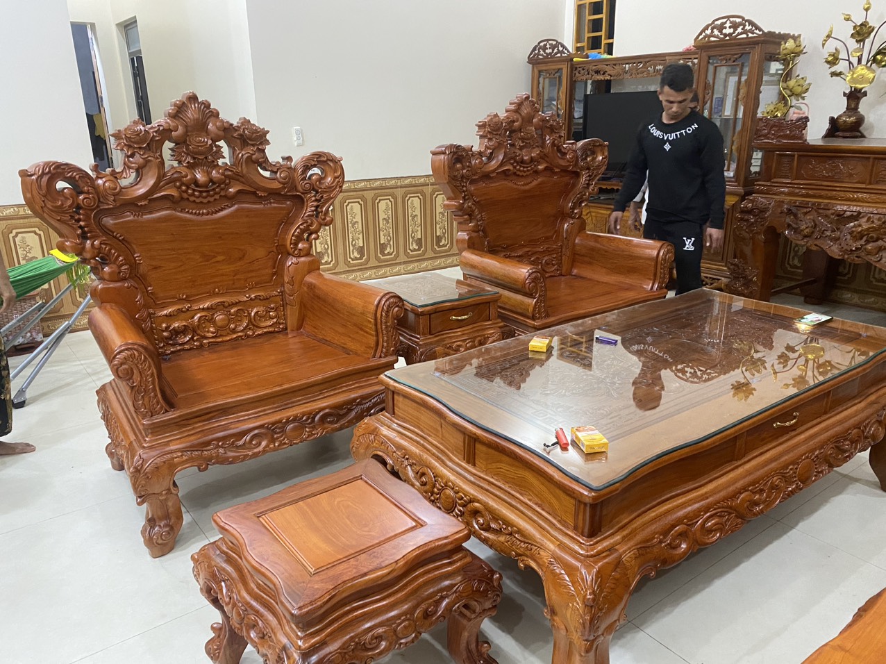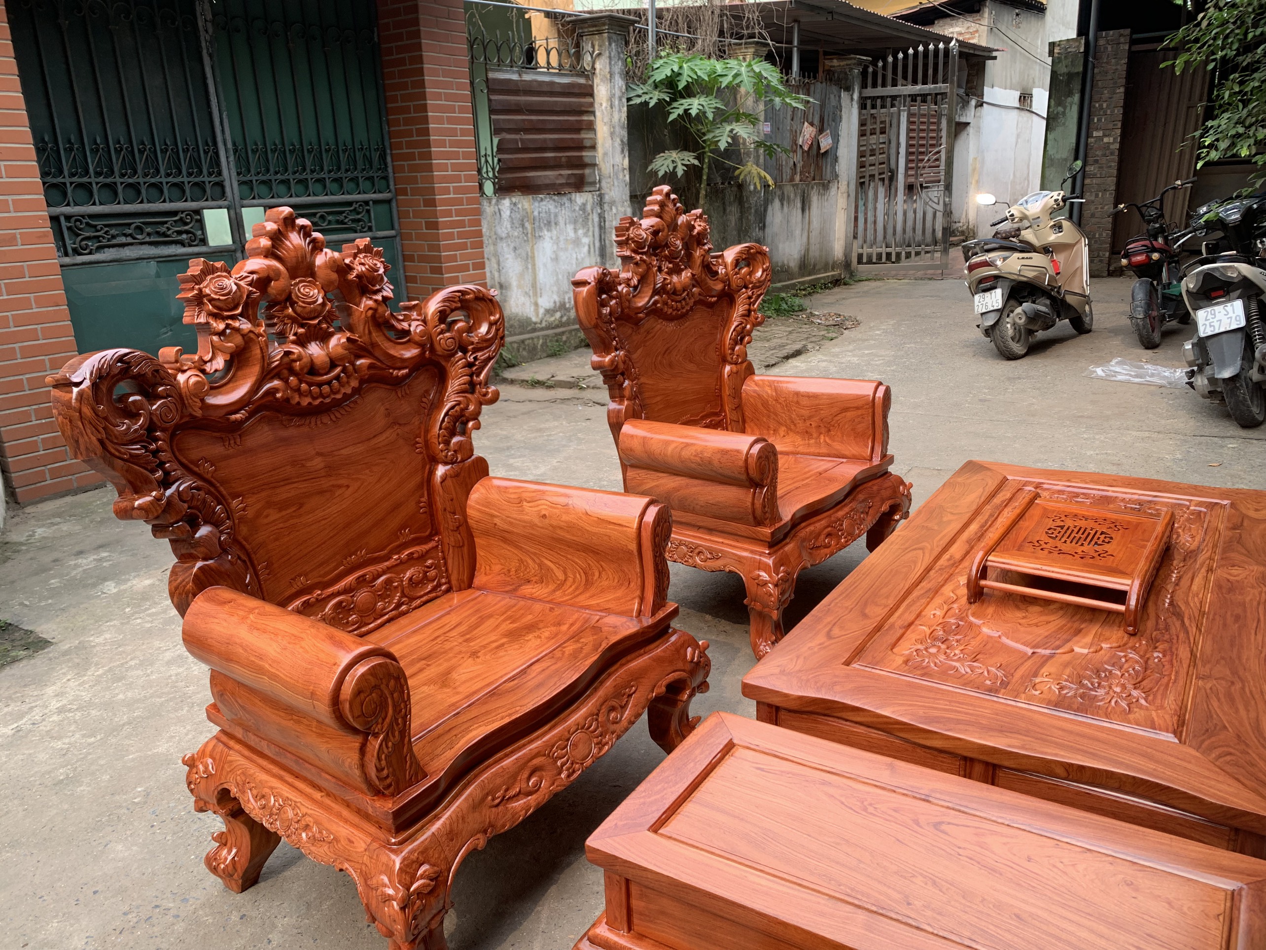 Bộ bàn ghế Hoàng Gia gỗ hương đá mẫu Tây Ban Nha chân 14